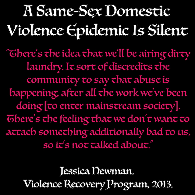 Domestic Violence in the LGB, HIV and Trans Communities has long been covered up with the mantra, aggressively pushed, that only good news can be published.
