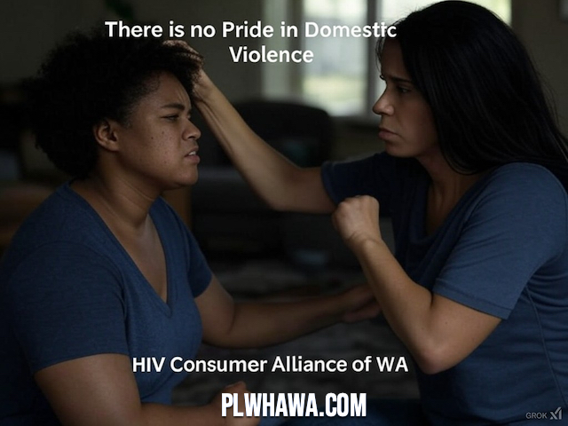 There's no pride in domestic violence – and our LGBTIQ+ communities deserve safety, respect, and open conversation on every issue that affects us. These images, created by Grok AI and People Living with HIV/AIDS WA (PLWHA WA), carry that clear message while highlighting the reality many face.