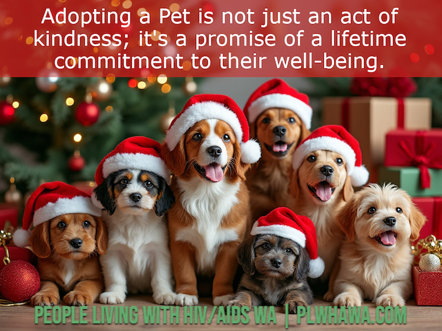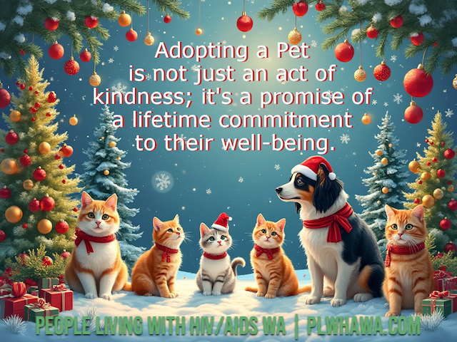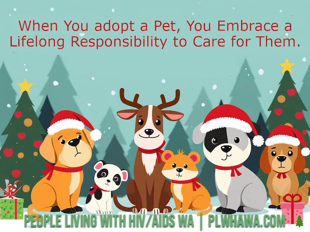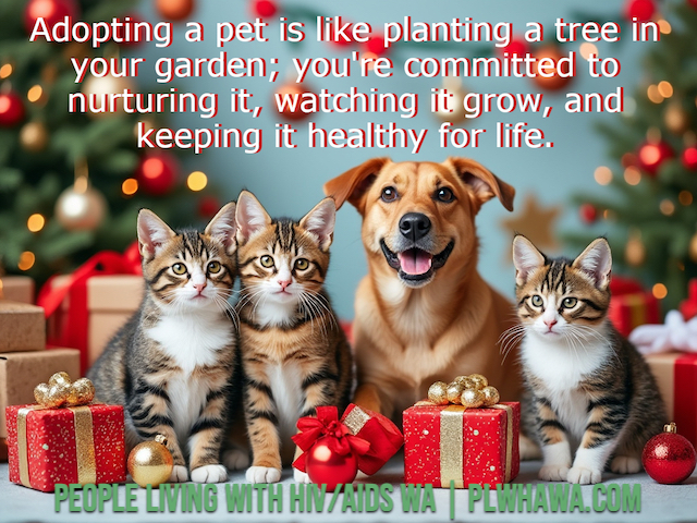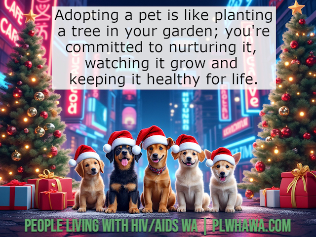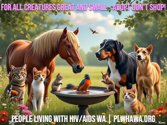 At PLWHA WA, we celebrate the wonderful role pets play in our community. We strongly encourage adopt, don’t shop — giving a loving home to an animal in need — and committing to care for them for their entire lives.