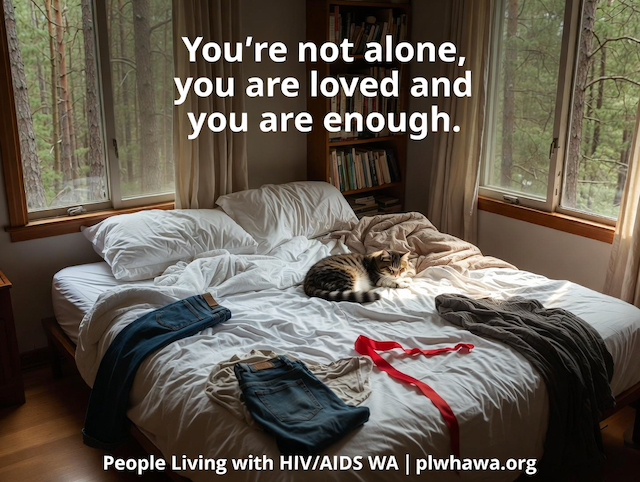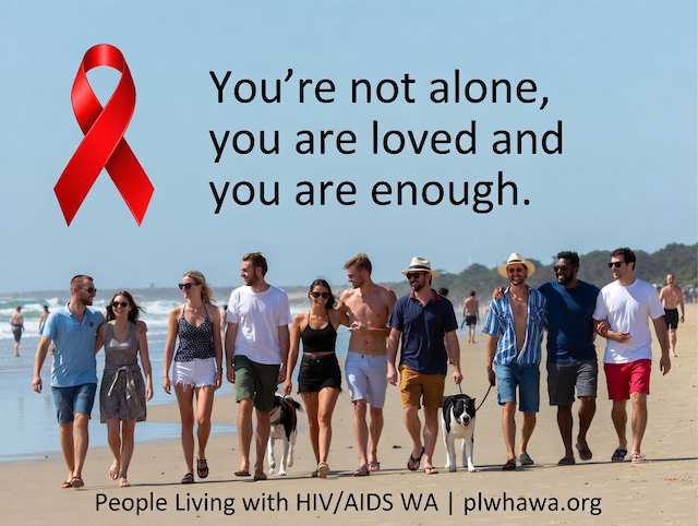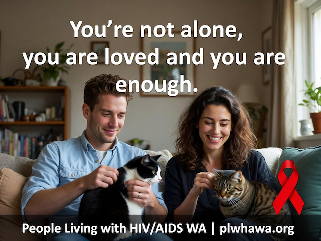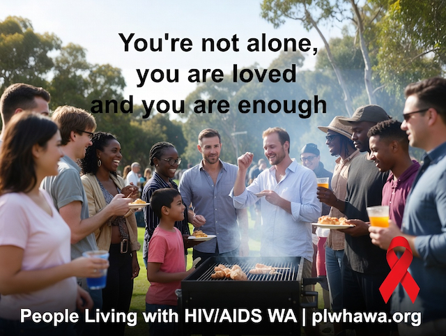 At People Living with HIV/AIDS WA, we believe in the power of positive, uplifting imagery to remind our community that hope, connection and self-worth are always within reach. This Christmas, we’re sharing a collection of free downloadable images created especially for you. Each one carries our core message: “You’re not alone, you are loved and you are enough.”