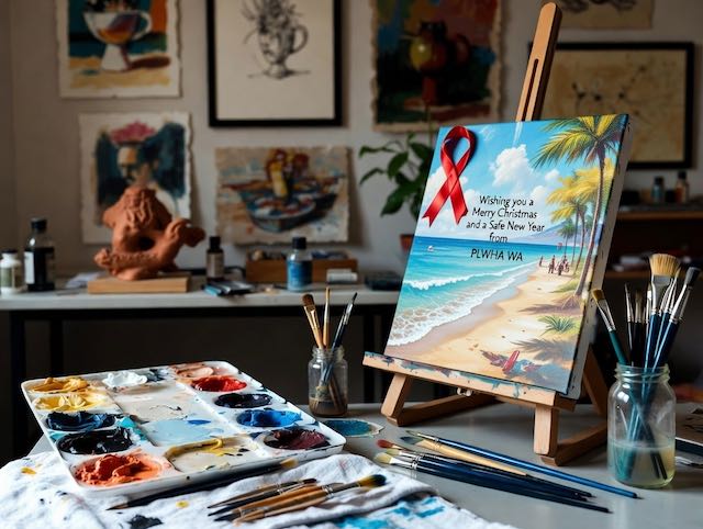 This is People Living with HIV/AIDS WA's Christmas Message 2025 and holiday images.